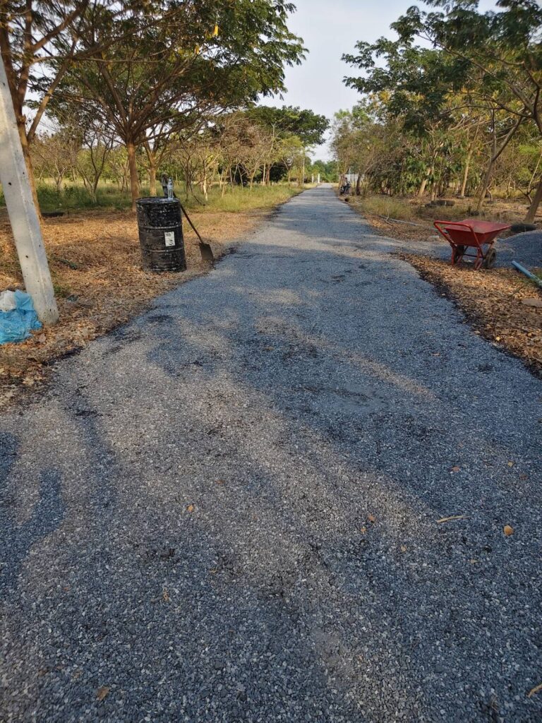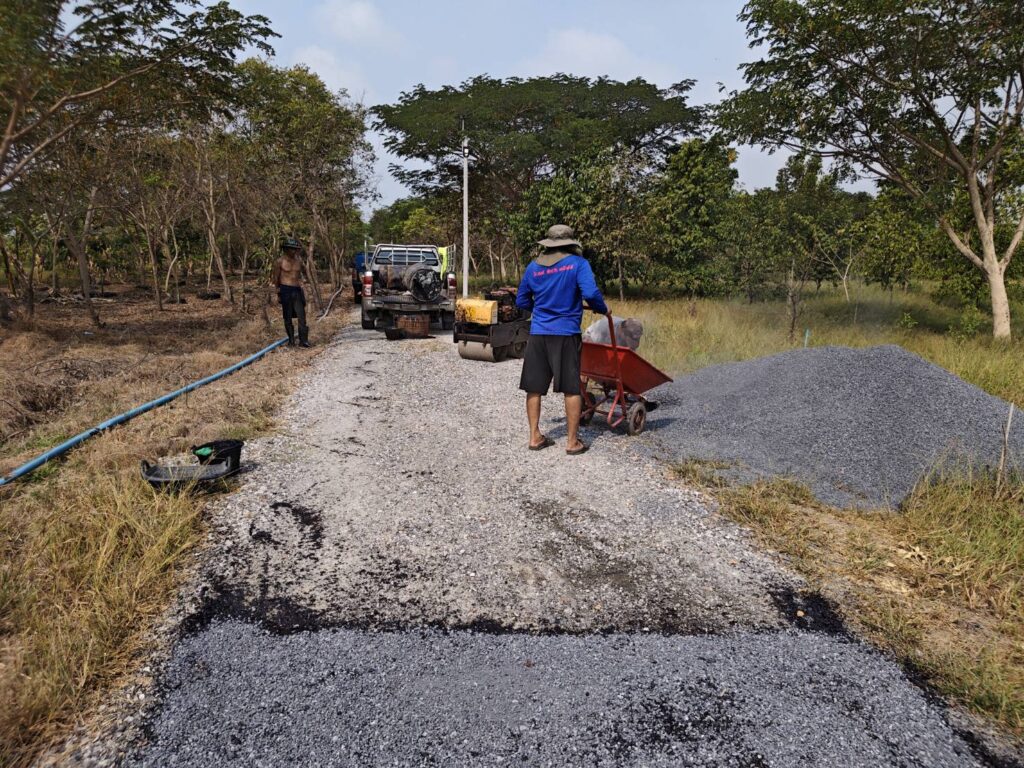 ถนนเข้าโครงการลาดยางแบบดับเบิ้ลซิงเกิ้ล (Double Surface Pavement) งบประมาณไม่เกิน 100,000 บาท