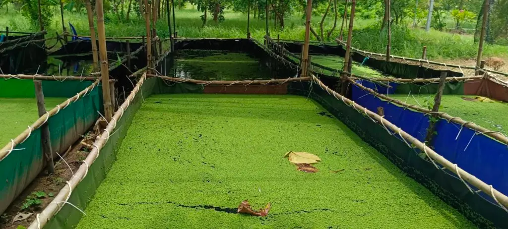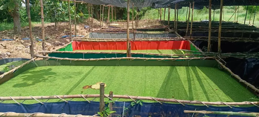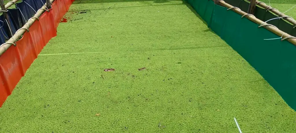 1.เตรียมกระชังบกขนาด 2×6 เมตร (หาซื้อได้ในออนไลน์ เช่น ลาซาด้า, ช้อปปี้ …) ทั้งนี้่ต้องใช้แสลนกรองแสงประมาณ 50% เป็นหลังคากระชัง เพราะ เคล็ดลับสำคัญคือ แหนแดงเป็นพืชที่ไม่ชอบแดด และไม่ชอบร่มมากจนเกินไป หรือให้ได้แสงแดดอย่างเพียงพอ ราวๆ 50 เปอร์เซ็นต์ หรือเลี้ยงในที่มีแสงแดดรำไรก็ได้ เพราะแหนแดงต้องการแสงแดดเพื่อการเจริญเติบโต