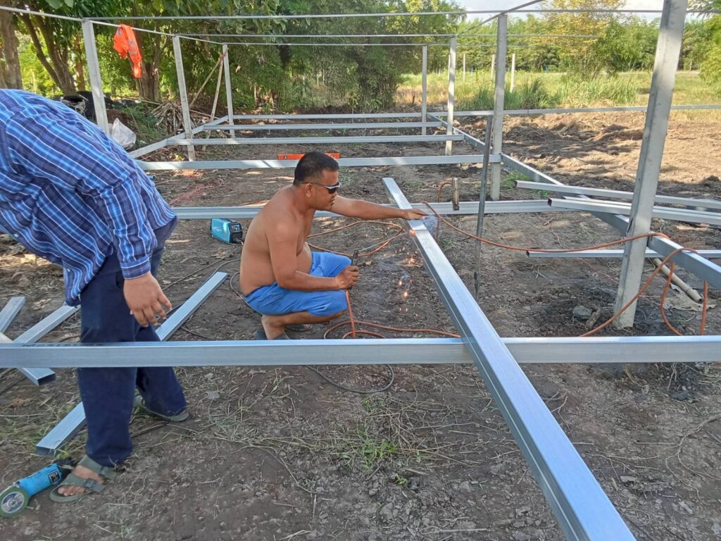 บรรดาพี่ช่างทั้งหลาย 5 คนก็ช่วยกันประกอปอาคารโรงเพาะแหนแดง ภายใต้การควบคุมชองช่างใหญ่ คือ ผู้จัดการคนเก่งของเรา (พี่ชาติเจ้าเก่า)