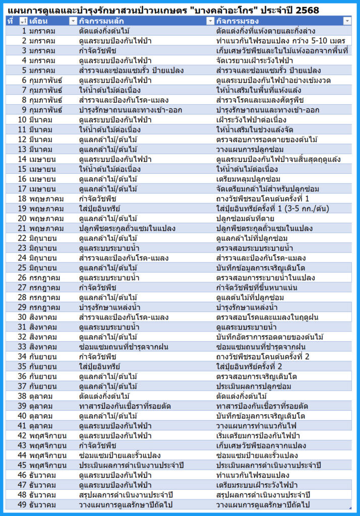 น.สพ.ธานินทร์ สันติวัฒนธรรม หัวหน้าโครงการสวนป่าวนเกษตร บางคล้าอะโกร (BKA) เปิดเผยว่า ในปี 2568 นี้ ฺBKA ก็ยังใช้กลยุทธหลัก คือ “สานงานต่อ ก่องานใหม่” กล่าวคือ ในด้านการสานงานต่อก็ได้แก่ แผนการดูแลและบำรุงรักษาสวนป่าวนเกษตร “บางคล้าอะโกร” ประจำปี 2568 ด้านล่างนี้
